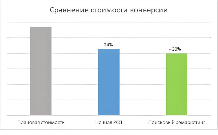Стоимость конверсии (CPA) в ночной кампании на 60% выше, чем в дневной кампании.