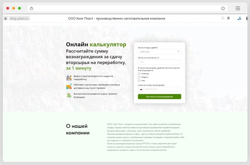 Клиент: компания по приему, сортировке, заготовке вторичного полимерного сырья.