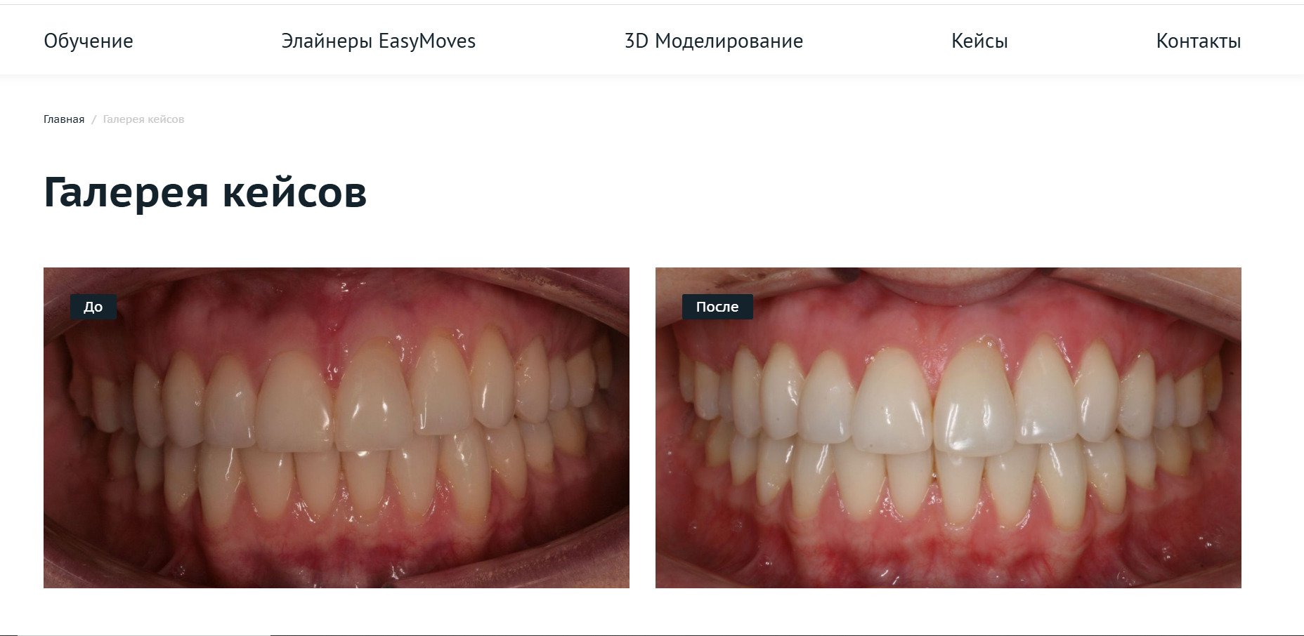 Галерея клинических случаев: наглядная демонстрация успешных результатов лечения с возможностью управления и обновления кейсов непосредственно из CRM.