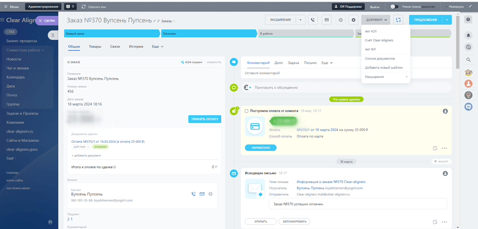 Централизованное хранение данных: все данные о заказах, платежах и обучении хранятся в единой системе, что упрощает управление бизнесом.