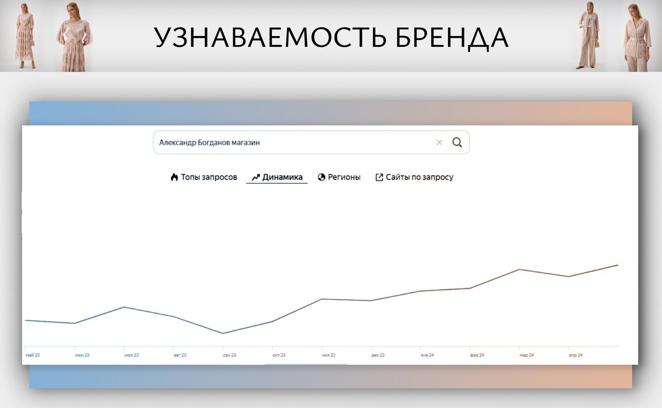 Но мы допустили ошибку, когда сконцентрировались на продвижении привычных нам видеоформатов в ленте. Особенно в начале 2024 года увидели значительную просадку. Но осознали, что люди уходили в вертикальные видео и было принято решение сместить фокус на раздел “Клипы”. Лицом бренда стал сам дизайнер и стилист Александр Богданов. Видеоролики начали залетать на десятки тысяч просмотров, а аудитория таких подписок стоила по 45 рублей.