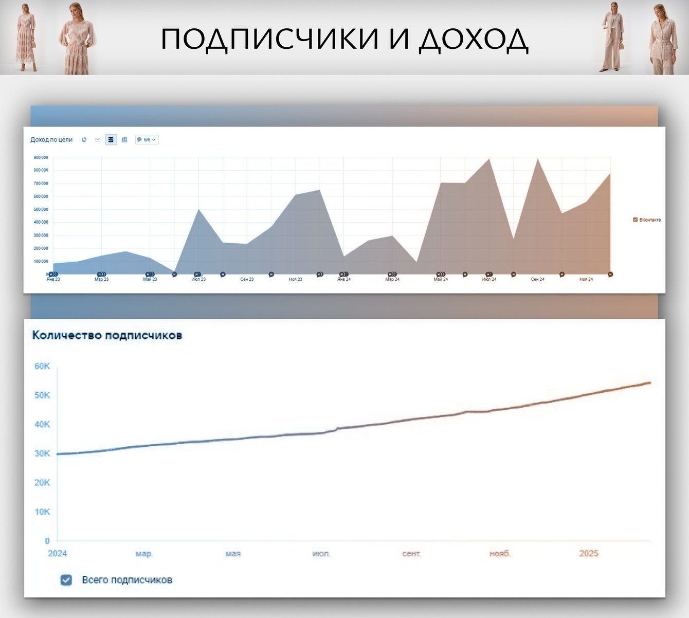 Несмотря на потерю Instagram, мы не только компенсировали трафик, но и значительно усилили позиции бренда во ВКонтакте. За 3 года сообщество выросло с 14 000 до 54 000 подписчиков, только за 2024 год прибавилось 24 000 человек, а продажи через соцсеть превысили показатели времен Instagram на 57%. Грамотное сочетание таргетированной рекламы, контент-маркетинга и ретаргетинга позволило превратить ВКонтакте в полноценный канал продаж, обеспечив устойчивый рост бизнеса.