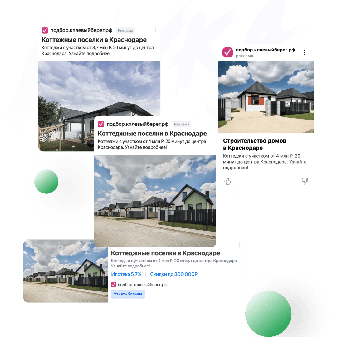 Основной упор сделали на РСЯ и посадку трафика на квизы: https://подбор.кплевыйберег.рф/ и https://подобрать.кплевыйберег.рф/.