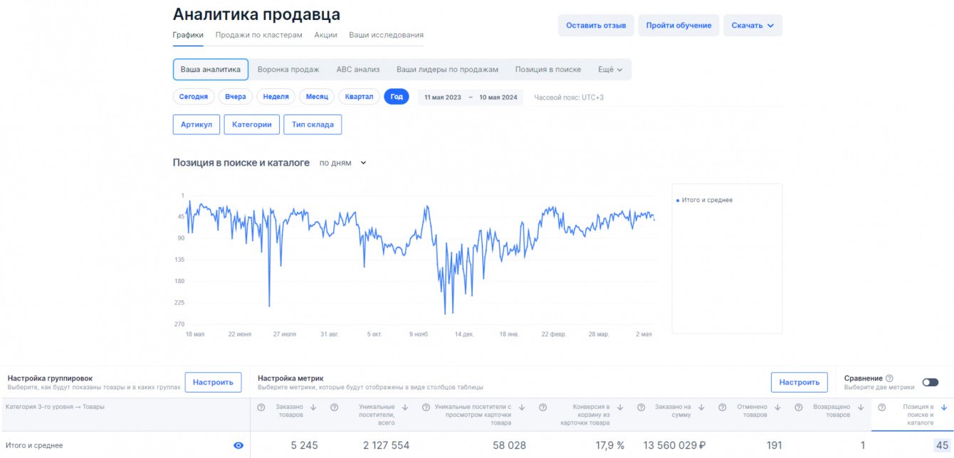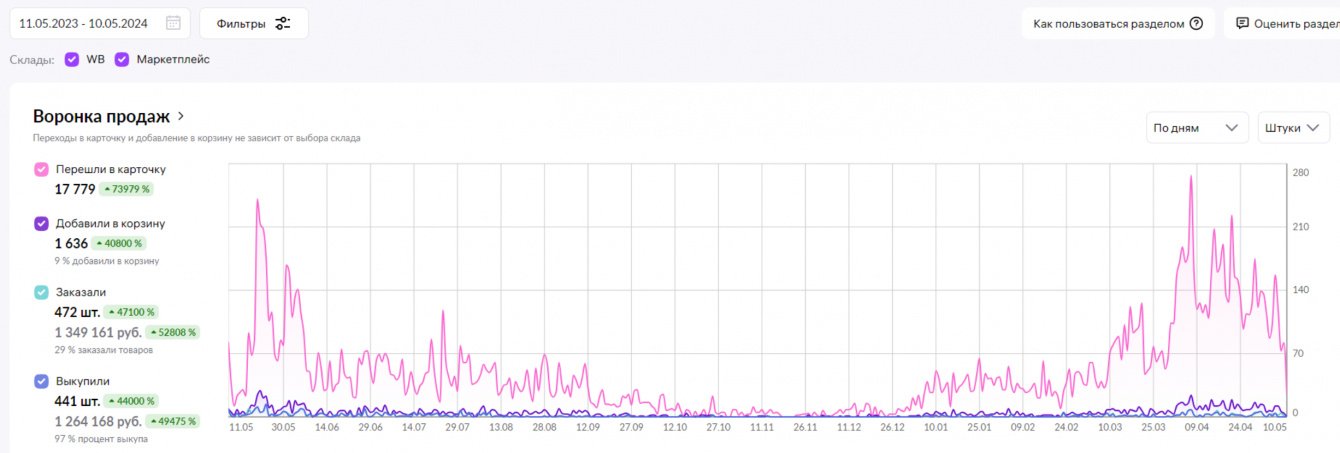 Клиент продолжает продавать на маркетплейсах. С учетом проделанных работ через год удалось добиться: