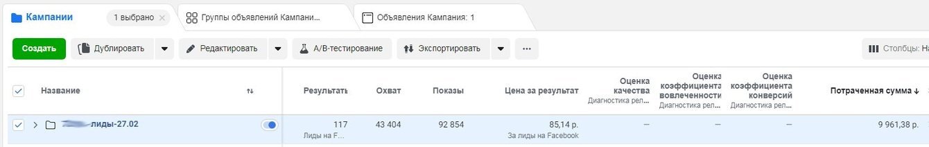А вот креатив с мужчиной аудитория не так сильно оценила, потратили 500 рублей и отключили его чтобы зря бюджет не сливать.