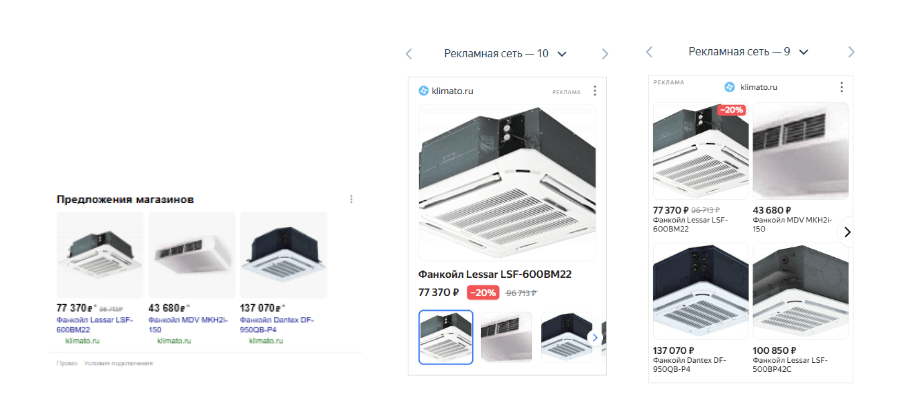 - Товарная реклама (галерея) — для автоматического охвата широкой аудитории через каталог товаров.