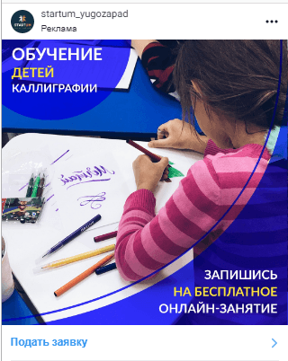 Заявок было много, и они были дешевые. Лучше всего зашла каллиграфия, стоимость заявки была 136 рублей, а всего их было 38 шт.Нам даже пришлось приостановить рекламную кампанию, так как у заказчика не хватало ресурсов с технической стороны для проведения такого количества уроков.