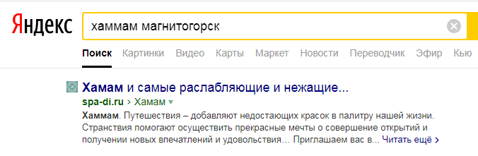 SEO-выдача СПА-центра «Другое измерение» в Яндекс