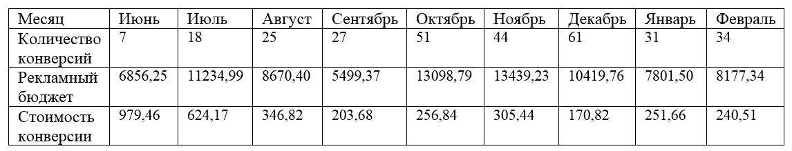 Средняя стоимость конверсии с сайта составила – 396,17 руб.
