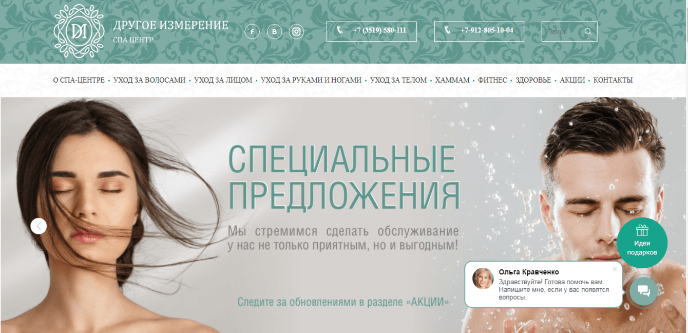 Скриншот с экрана главной страницы сайта СПА-центра «Другое измерение»