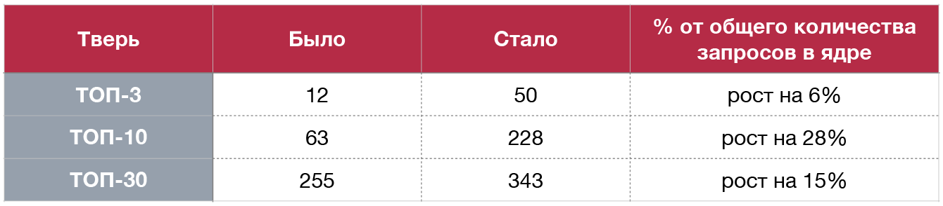 А видимость поддомена в Твери практически в 4 раза, за счет роста числа запросов в ТОП10: