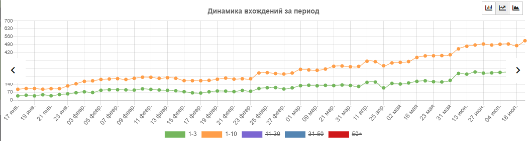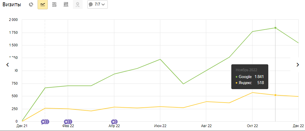 На протяжении продвижения постоянно проводился анализ данных метрики и анализ оптимизации сайтов конкурентов, на основании которых составлялись рекомендации, например: