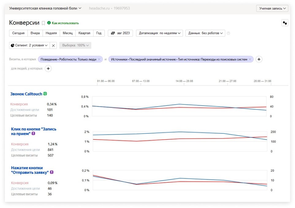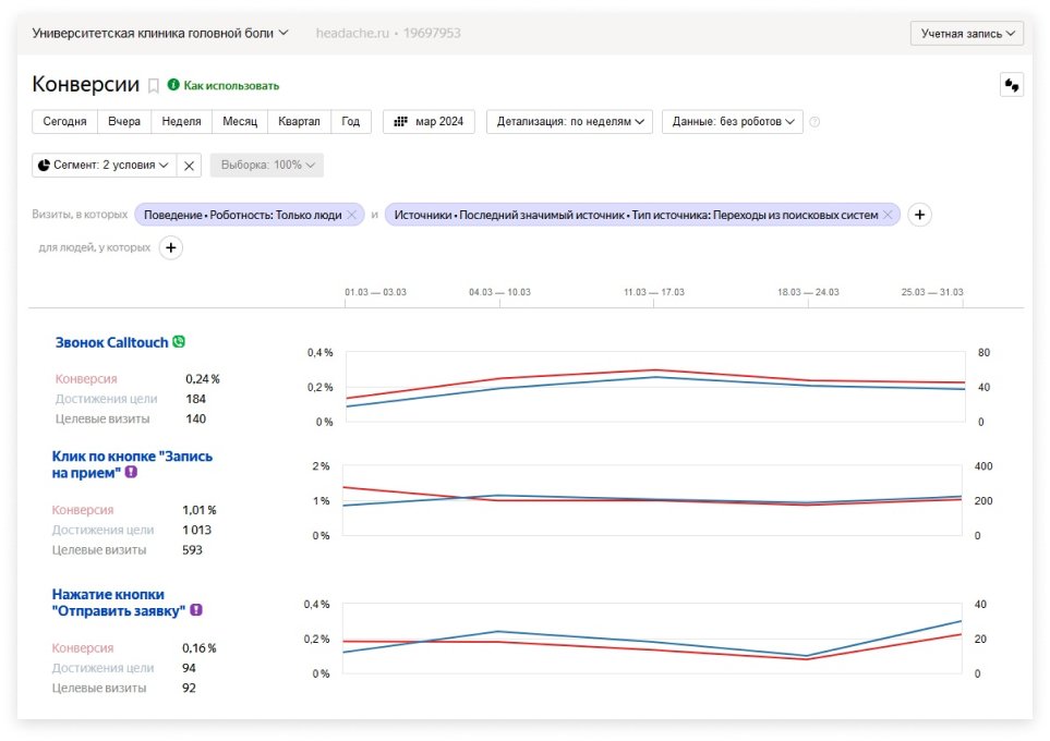 логотип, кнопку записи на прием, продублировали номера телефонов и адрес клиники.Мы предложили клиенту комплексное SEO-продвижение и проработку сайта с учетом недостающих маркетинговых инструментов.