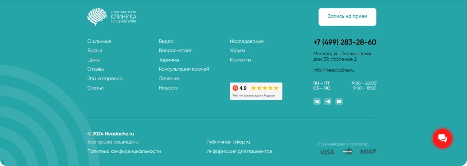 Наш заказчик – узкоспециализированный медицинский центр, где лечат головную боль. Коллектив врачей придерживается международных стандартов, работает в соответствии с принципами доказательной медицины. На базе центра проводятся научные исследования, ведется образовательная деятельность. Клиника работает с 2012 года в Москве.