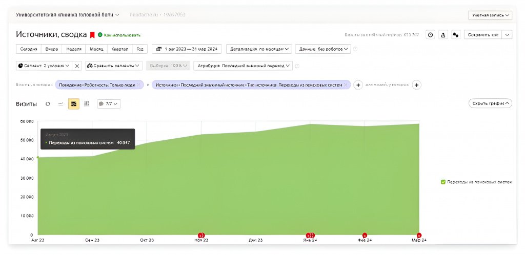 Заказчик клиентоориентирован: следит за качеством предоставляемых услуг, компетентностью персонала, а также понимает необходимость продвижения. В кейсе представлены результаты сотрудничества с августа 2023 года по март 2024-го. На данный момент работа продолжается.