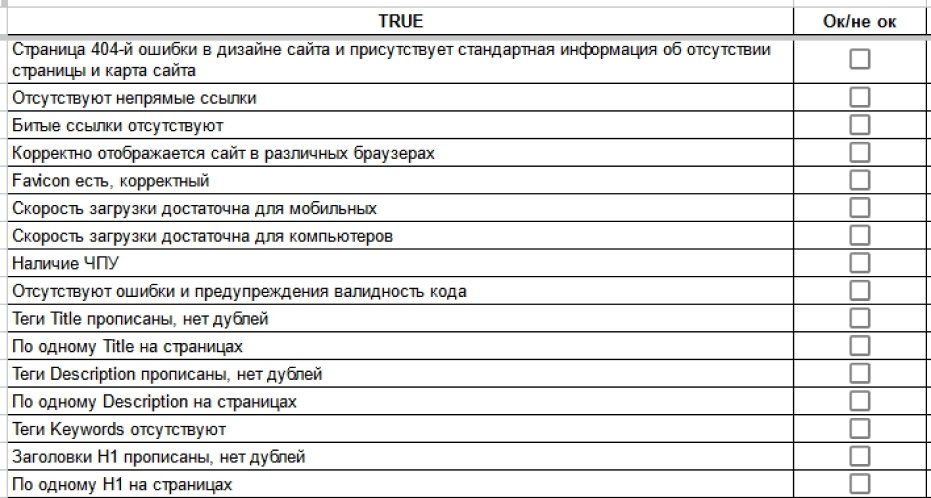 и устраняем найденные ошибки. Например, выполняем настройку 301-редиректов, создаем и обновляем карты сайта (xml- и html-карты). Для анализа технической части используем созданный нами чек-лист.