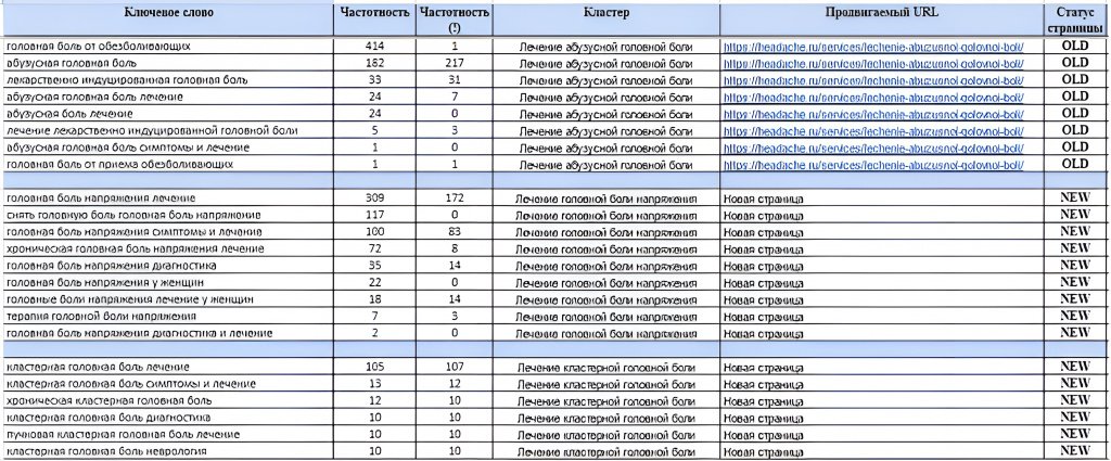 по страницам сайта, провели кластеризацию. На данный момент мы продолжаем планомерно реализовывать расширенную структуру сайта на основе кластеризованного семантического ядра.
