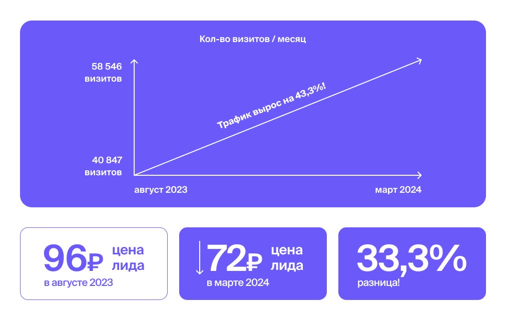 За месяцы сотрудничества трафик вырос с 40 847 до 58 546.