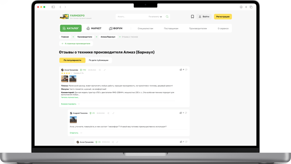 Разработали раздел, где пользователи могут обмениваться опытом эксплуатации сельскохозяйственной техники. В этом разделе также возможно задавать вопросы о работе техники и получать ответы от других пользователей, производителей или дилеров
