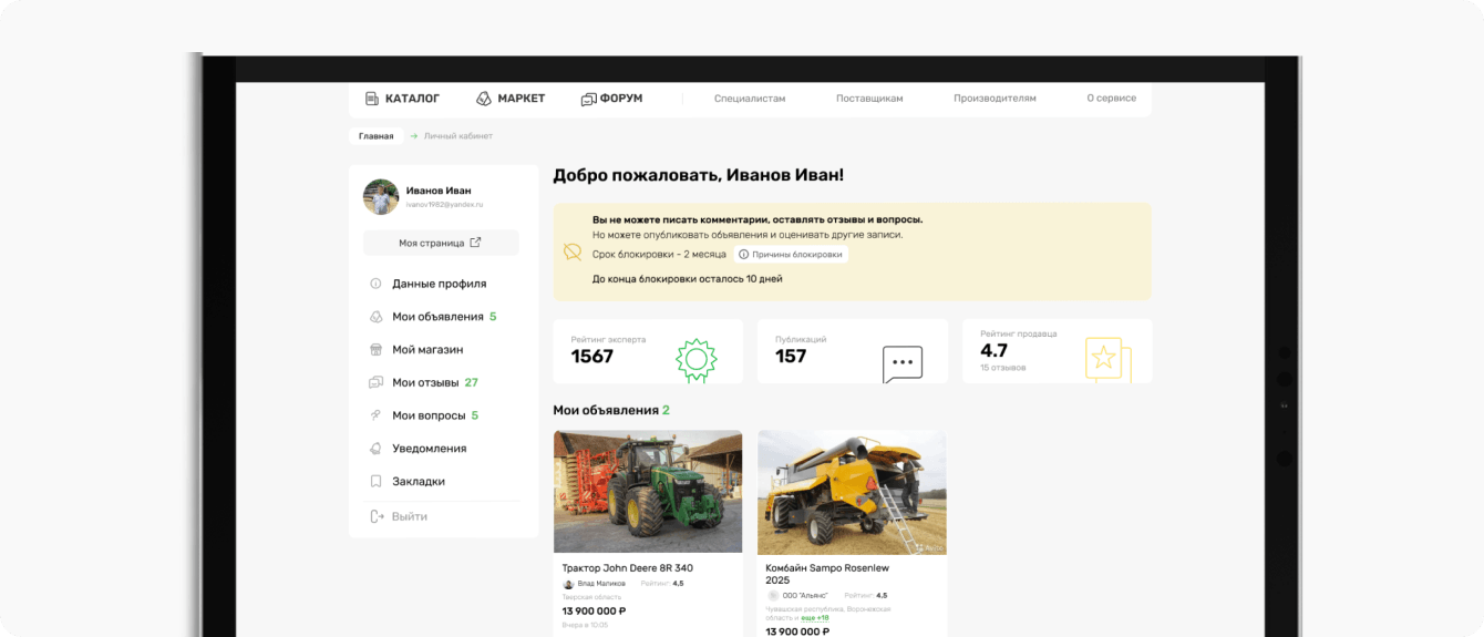 Создали раздел «Маркет», где представлены объявления о продаже сельскохозяйственной техники от проверенных продавцов, дилеров и производителей. Тщательный отбор участников обеспечивает надежность и качество предлагаемой продукции.