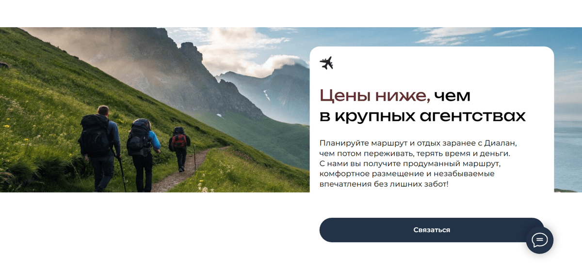 - Использовали фирменные цвета и стиль, отражающие атмосферу путешествий.