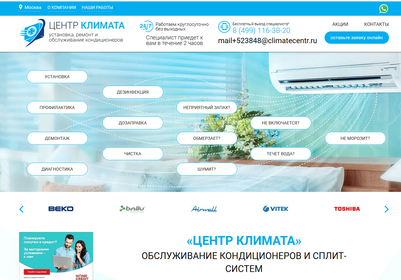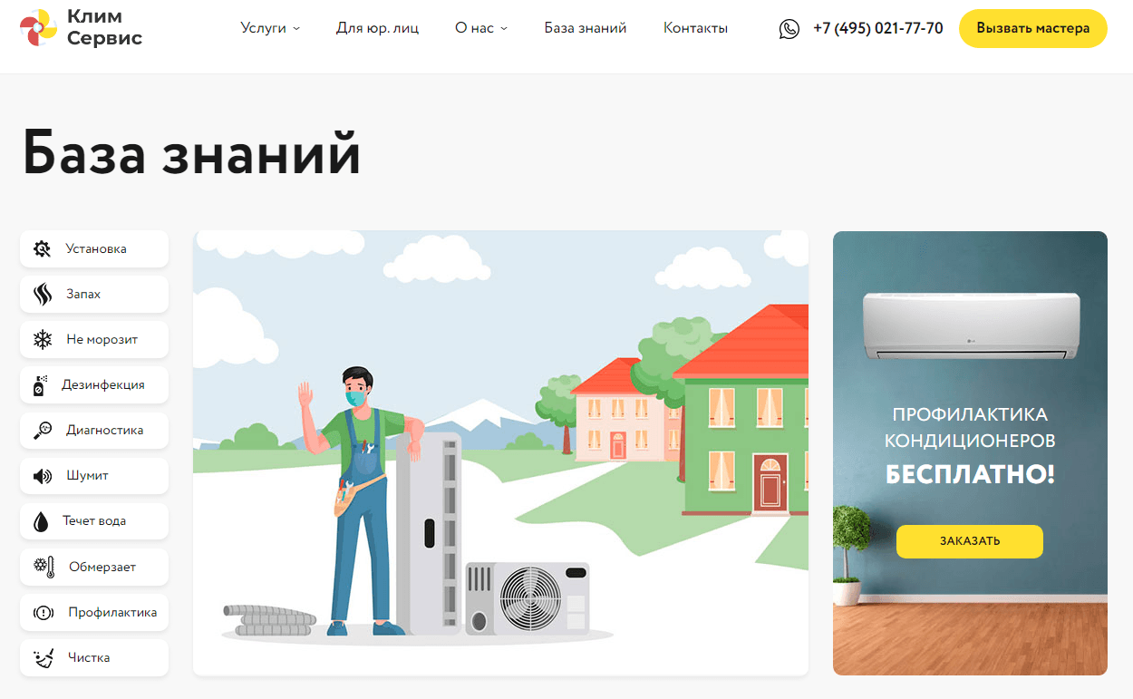В мае 2020 года к нам за помощью обратилась организация, занимающаяся ремонтом и обслуживанием кондиционеров. Сайт у клиента уже был, поэтому нашей целью являлся рост целевого трафика и масштабирование конверсий на сайте.