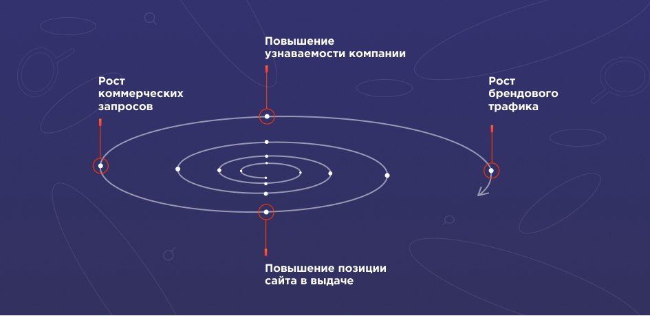 Продвигая сайт по коммерческим запросам, мы повышаем узнаваемость компании. Узнаваемость компании увеличивает количество брендового трафика.