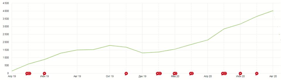 Август 2020 г. = 4 019 визитов/месяц.