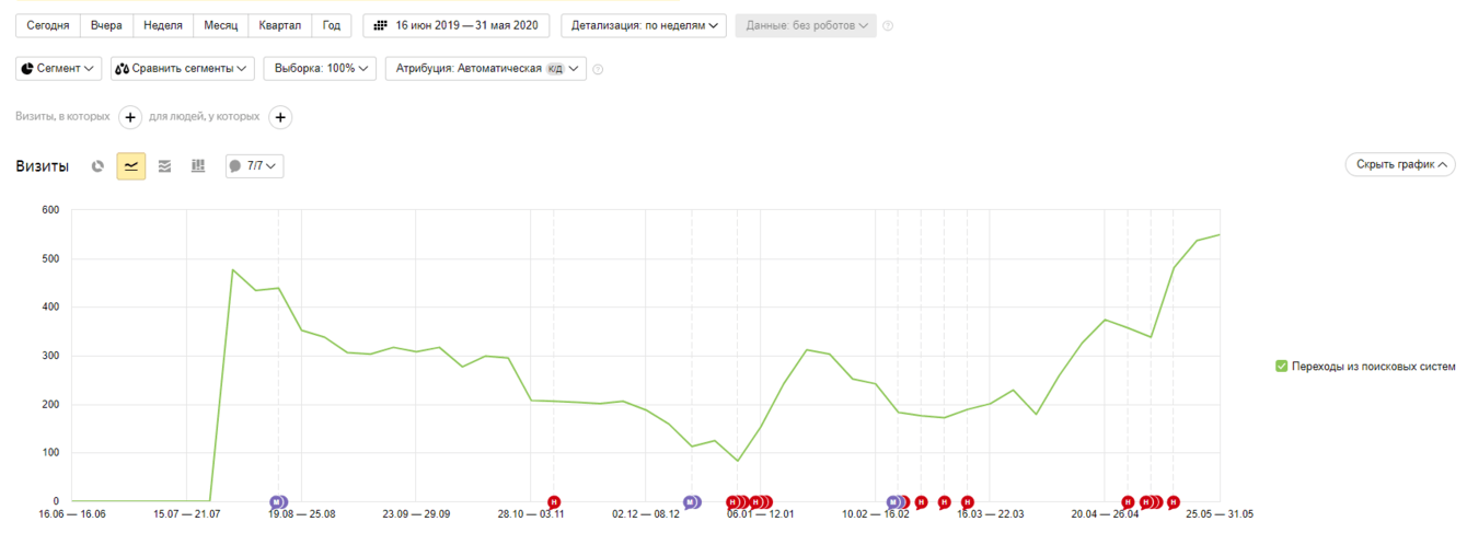 Естественно, SEO дало результат не сразу. Но мы регулярно поддерживали связь с заказчиком, показывали отчеты с быстрой положительной динамикой и строили прогнозы. Так получилось сохранить с клиентом доверительные отношения.