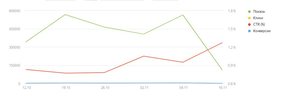 Настроили цели и пиксели для отслеживания конверсий на сайте. CTR с кампании в Яндексе возросло меньше чем за месяц: