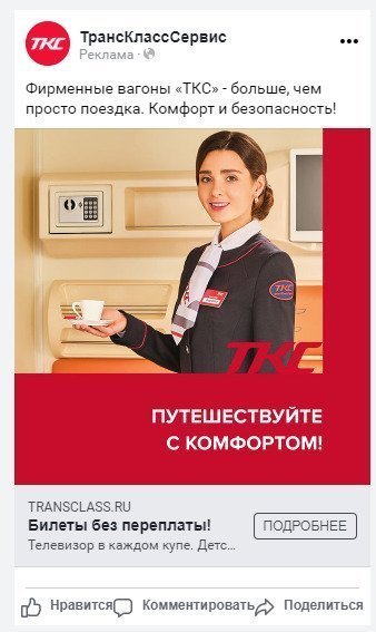 Казалось бы, железнодорожные перевозки – не совсем та сфера, которую принято рекламировать в социальных сетях. Однако это точно такая же услуга, как авиаперелеты или заказ такси. Целевая аудитория ТКС – деловые люди, которые часто переезжают между городами в командировки или по иным делам. Также это семьи, отправившиеся в путешествие на отдых. Большая часть ЦА – состоятельные люди, желающие путешествовать в комфортных условиях.