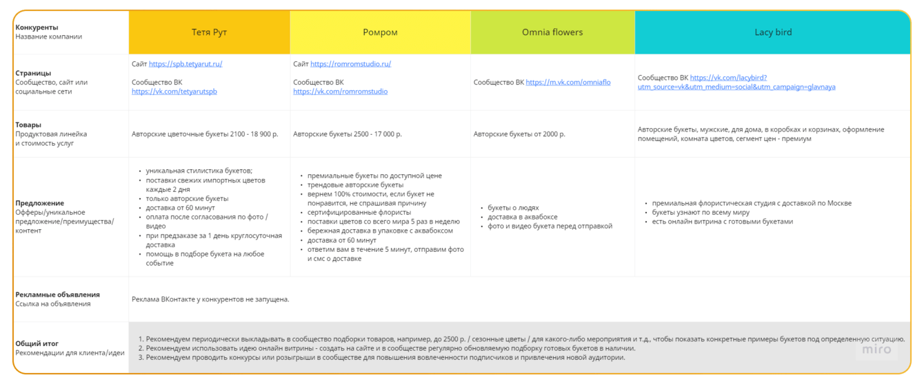 - Из-за крайне высокой конкуренции в нише цветочного бизнеса важно сформулировать уникальные преимущества и особенности магазина и транслировать их в рекламе. Это позволит выделиться среди конкурентов и привлечь аудиторию.