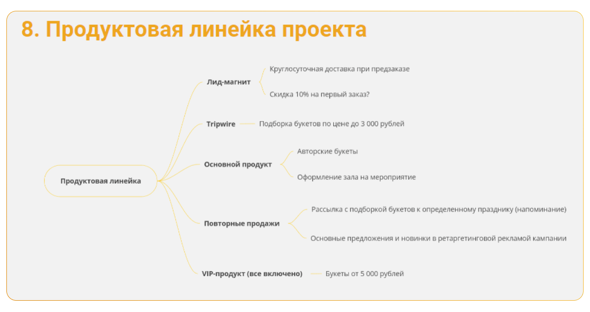 Изучая продуктовую линейку заказчика, понимаем, на что можно делать акцент в рекламе, чтобы привлекать пользователей сделать заказ