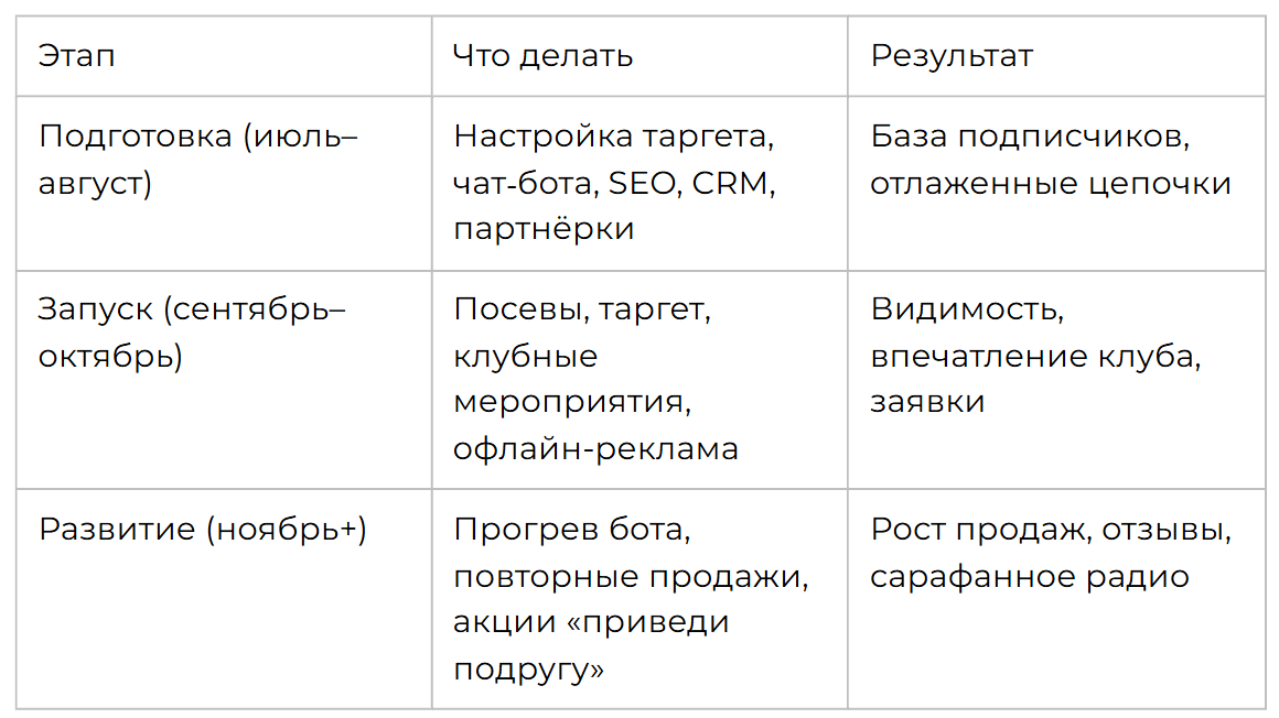 🔹масштабирование через партнёрства и офлайн-медиа.