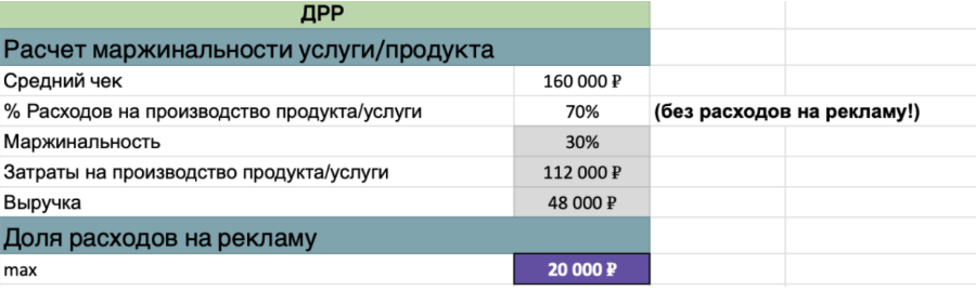 Расчет доли рекламных расходов на 1 договор (сколько мы можем потратить денег, чтобы привлечь одного клиента)
