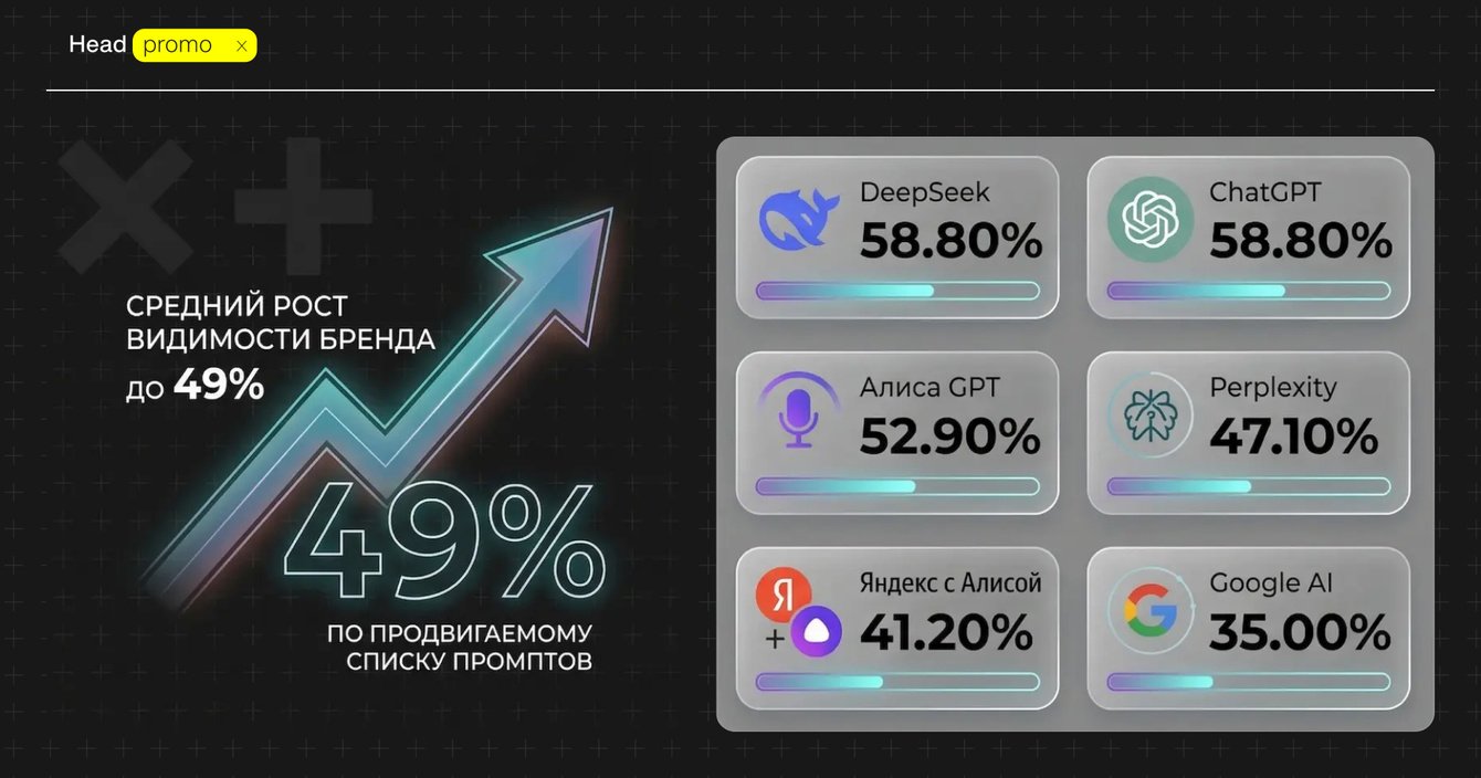 Главный результат: рост видимости бренда в среднем до 49% по продвигаемому списку промптов.