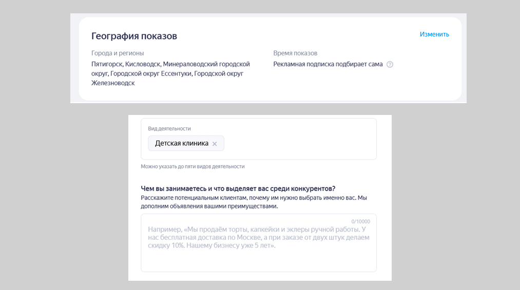 При анализе текущих кампаний обнаружилась следующая картина: география показов была настроена на весь регион, хотя 90% пациентов приходят из радиуса 3–5 километров. Объявления заполнены формально — без преимуществ, без УТП.