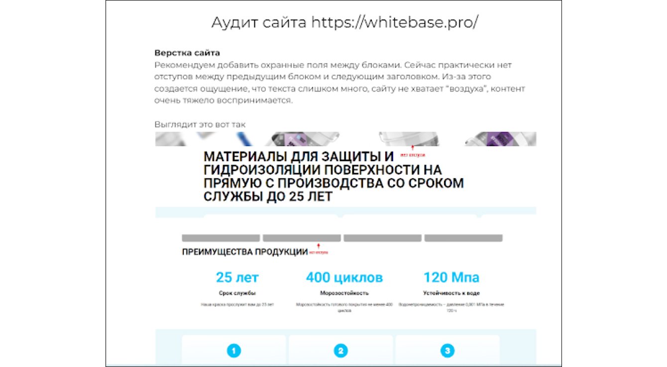 Аудит сайта выявил следующие недостатки: