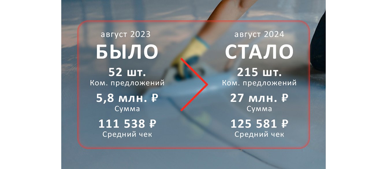 С учетом полученных данных и анализа, за время работы с проектом, с июня 23 года по апрель 24 года, мы добились значительных результатов. Всего было получено 1930 конверсий по средней стоимости 648 рублей. Проанализировав статистику мы видим, что после начала работ с агентством СайтАктив, в сравнении с предыдущим годом, общая стоимость коммерческих предложений выросла в 18 раз.