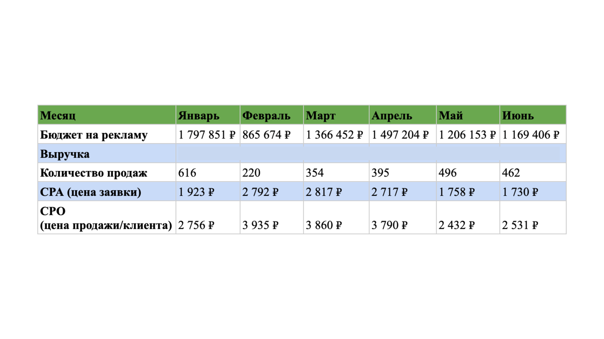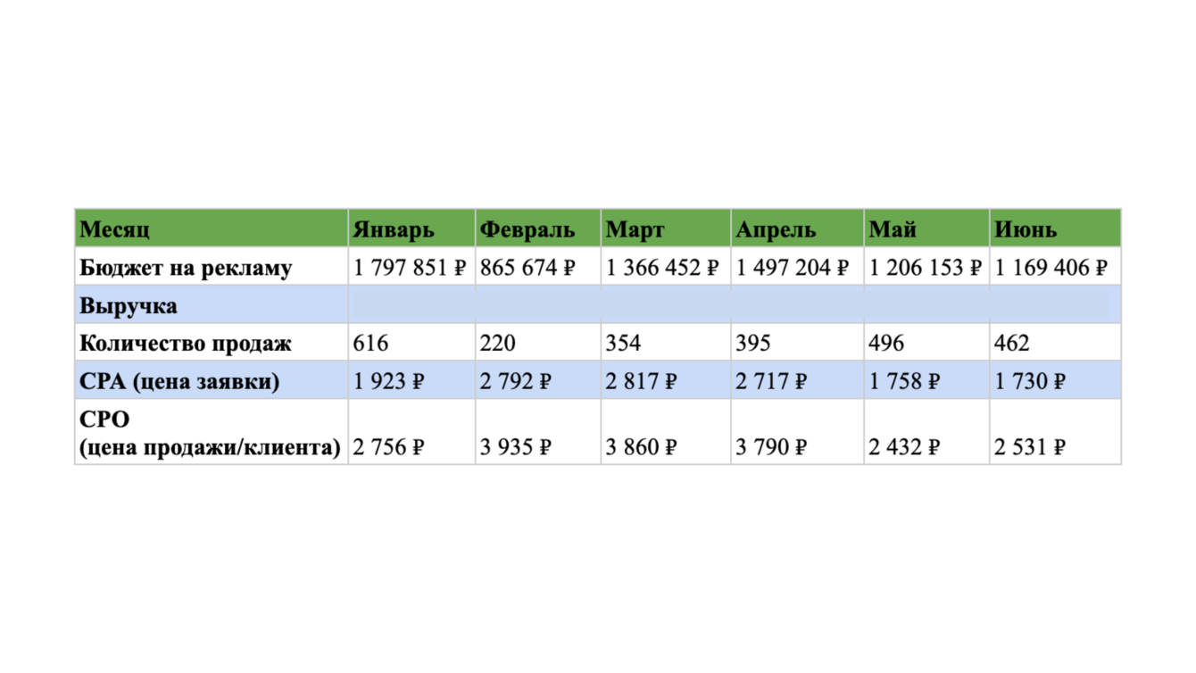 1. Январь не так репрезентативен, поскольку это еще зимний сезон, а также, сезон высокой покупательской сезонности. Помимо этого, был затрачен самый крупный бюджет всего полугода.