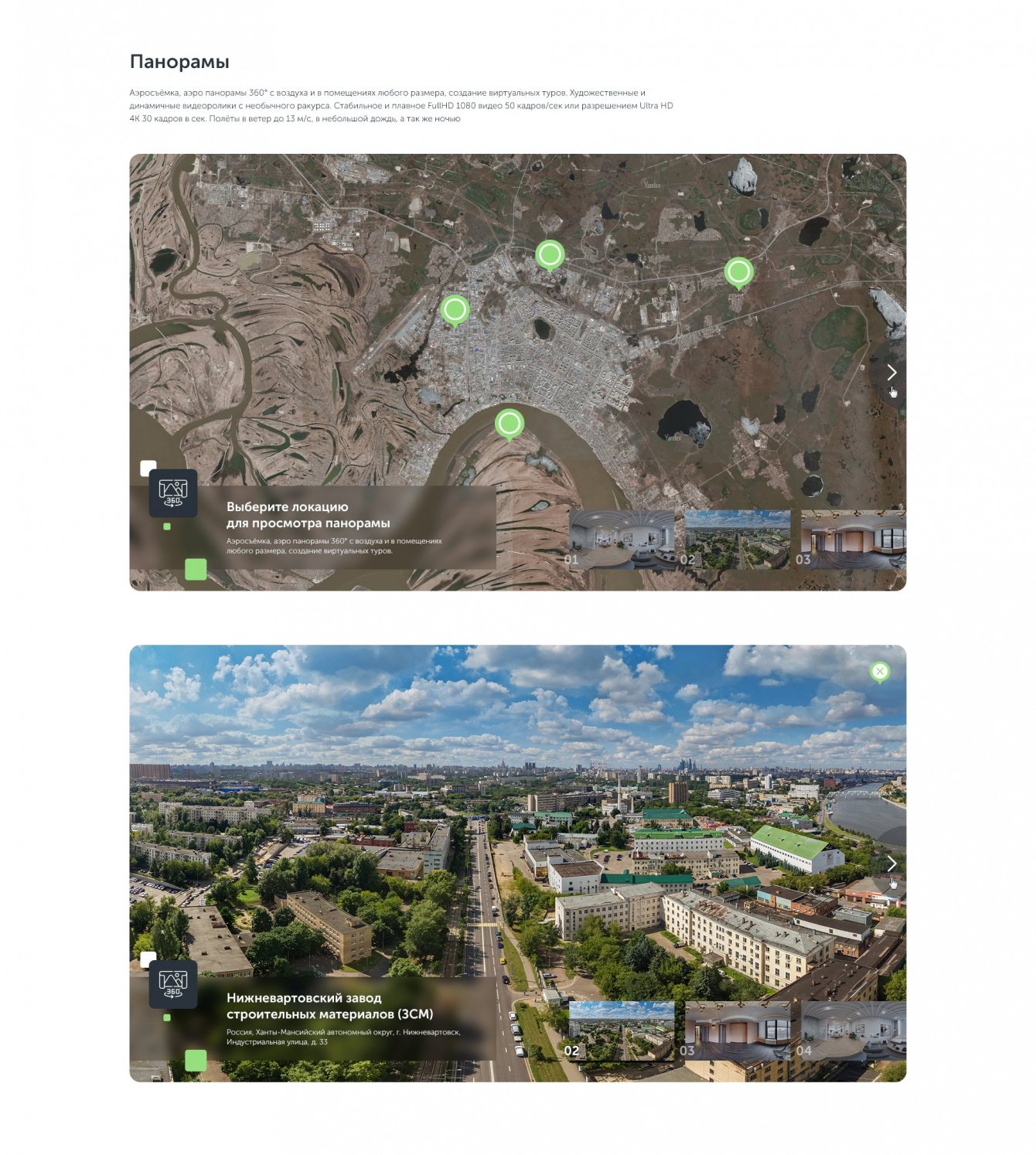 В основном баннере мы использовали видео, снятое с помощью БПЛА. Баннер расположен сразу под хедером.