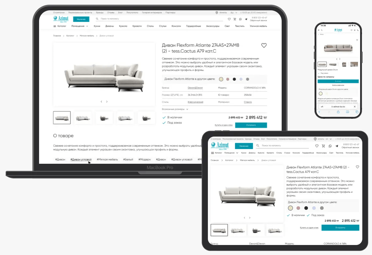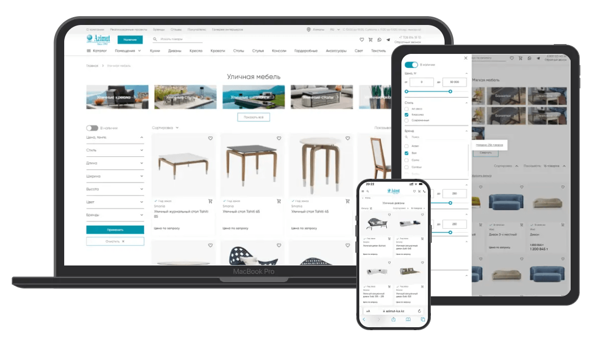 На сайте Azimut пользователь сам определяет количество выводимой информации: по 16, 24, 32 товаров на странице.