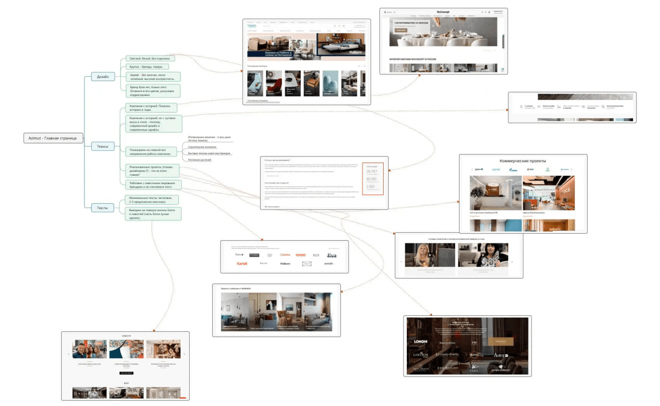 На начальном этапе работы с проектом разрабатывается структура сайта, в которой схематично прописывается какие страницы и блоки должны быть на сайте, а также указывается куда ведут те или иные ссылки.