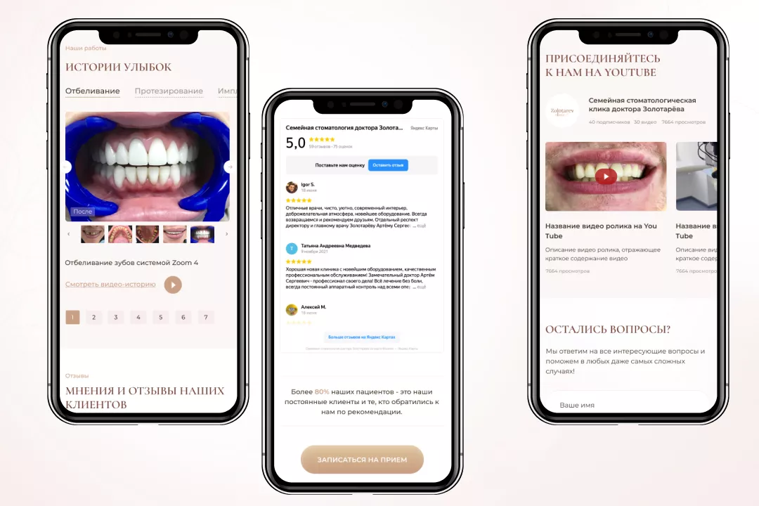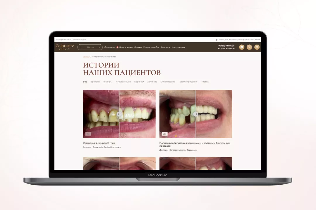Всем привет! Сегодня вместе с командой разработки Зекслер делимся кейсом, как делали сайт для семейной стоматологии доктора Золотарёва. Кратко с другими нашими работами, а также полезными материалами можно ознакомиться в нашем Телеграм-канале. Поддержите нас подпиской:) Пишите комментарии, задавайте вопросы, на всё ответим.