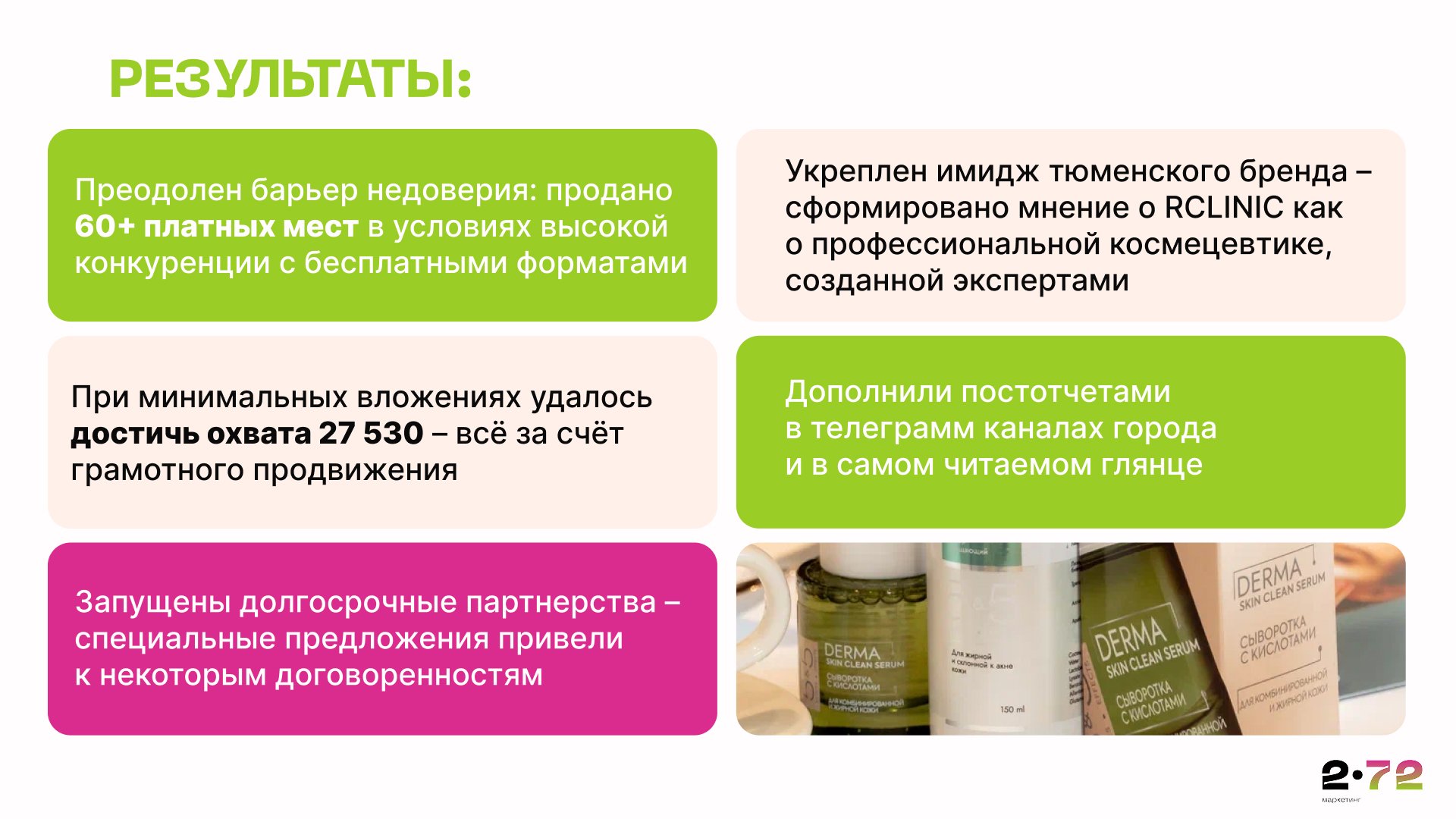 ✅ Укреплен имидж тюменского бренда – сформировано мнение о RCLINIC как о профессиональной космецевтике, созданной экспертами