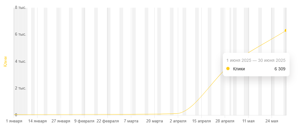 Итог: проект вышел на новый уровень. Это пример того, как комплексная SEO-стратегия работает в «долгую» и приносит реальную пользу бизнесу — не за счёт трюков, а благодаря точной аналитике и вниманию к потребностям аудитории.