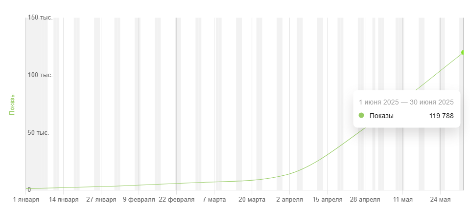 К июлю количество показов сайта в Яндексе достигло 119 788.