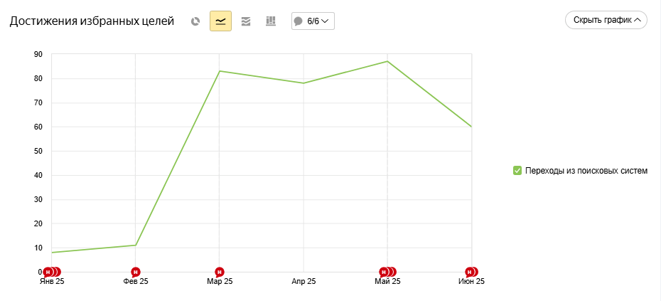Благодаря точной проработке семантики, созданию новых разделов и системной работе с техническими, коммерческими и поведенческими факторами, мы добились не кратковременного всплеска, а устойчивого роста. SEO стало не просто каналом привлечения трафика — оно превратилось в инструмент развития бизнеса.
