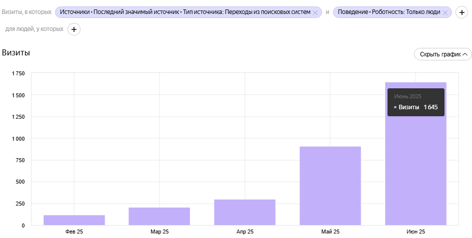 Итог: проект вышел на новый уровень. Это пример того, как комплексная SEO-стратегия работает в «долгую» и приносит реальную пользу бизнесу — не за счёт трюков, а благодаря точной аналитике и вниманию к потребностям аудитории.