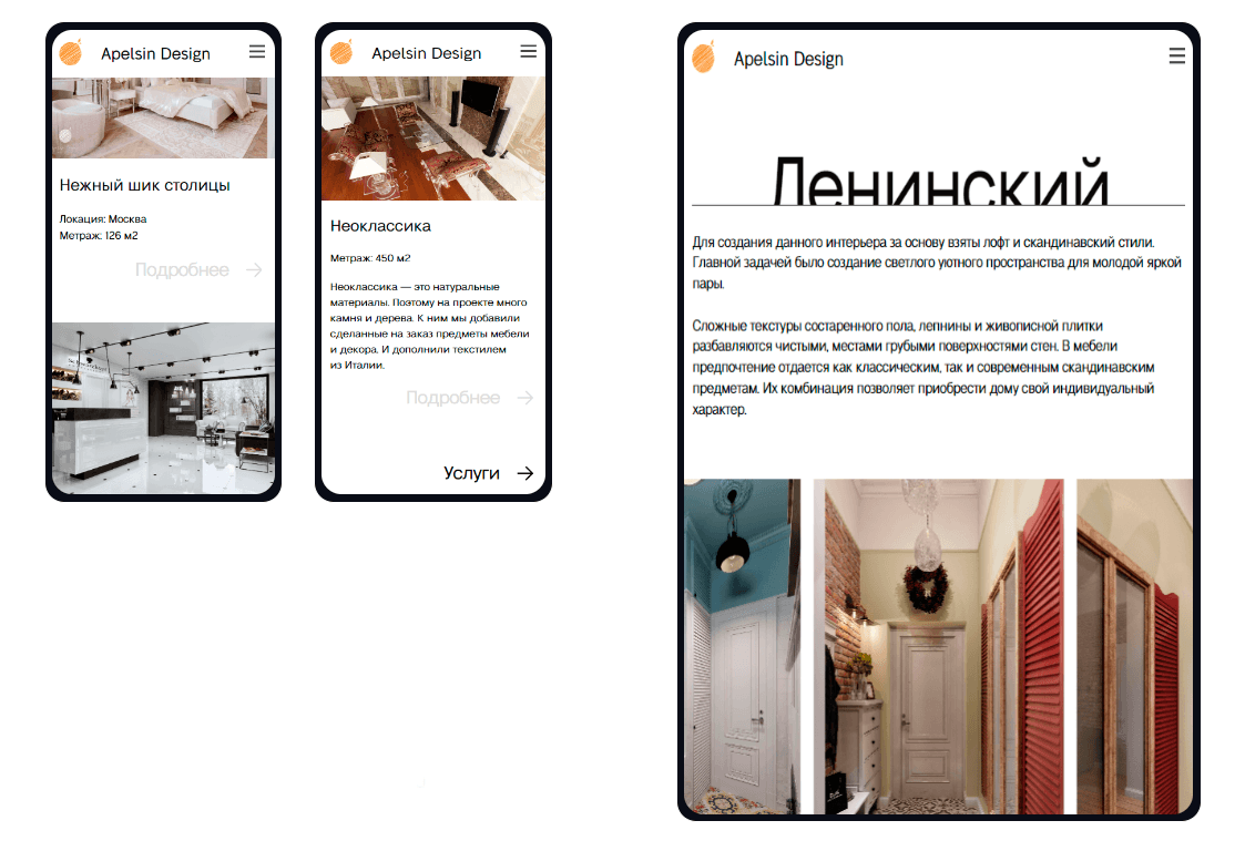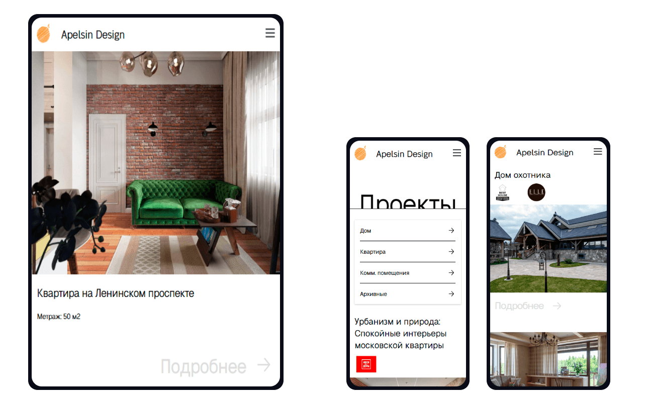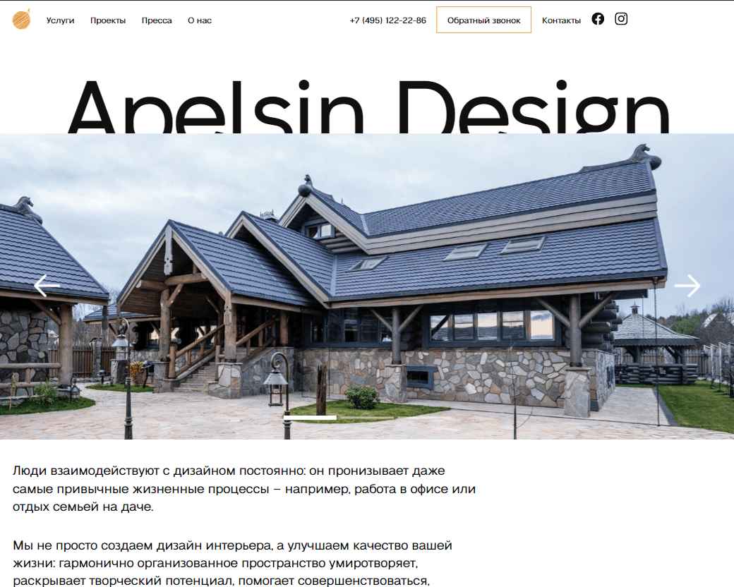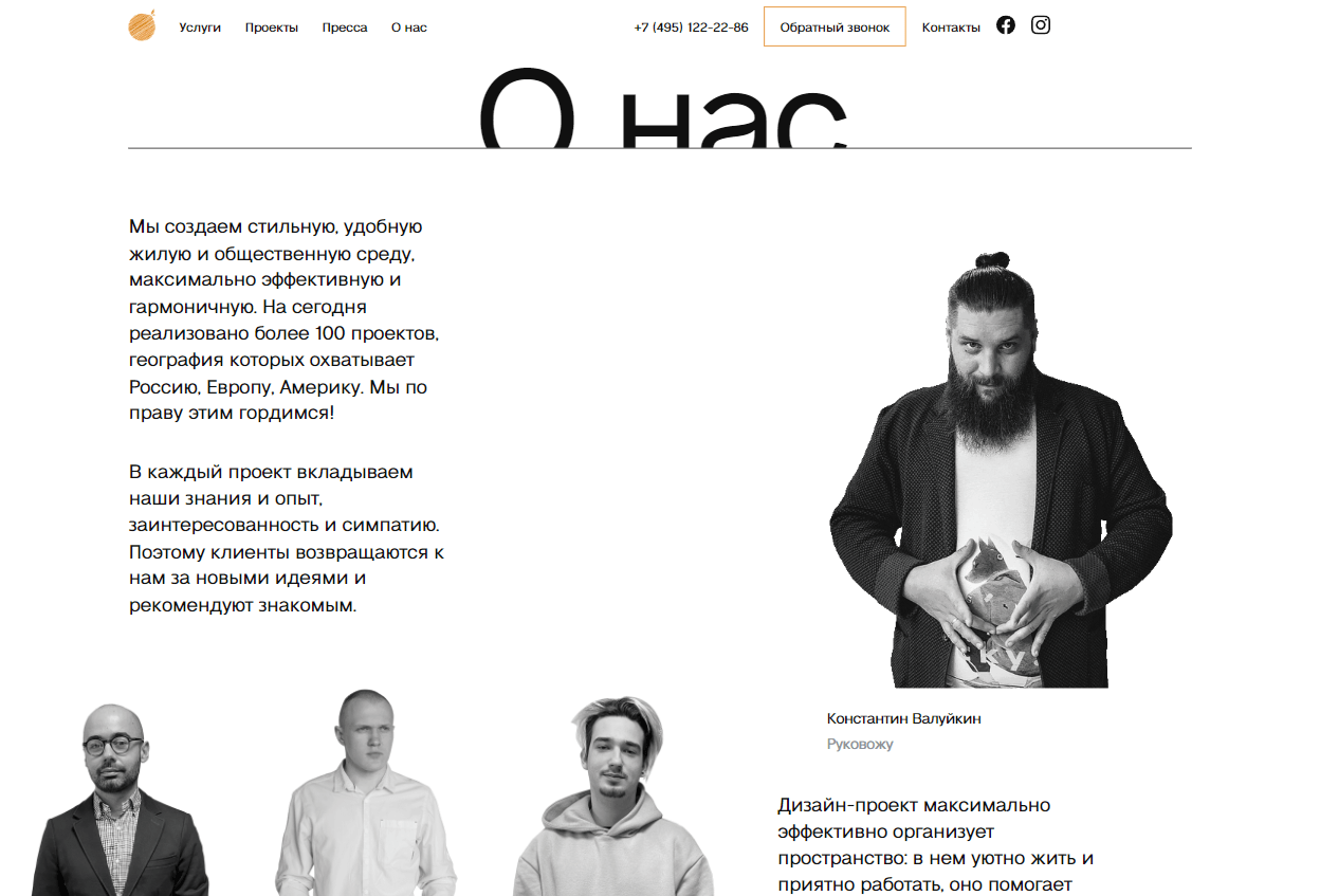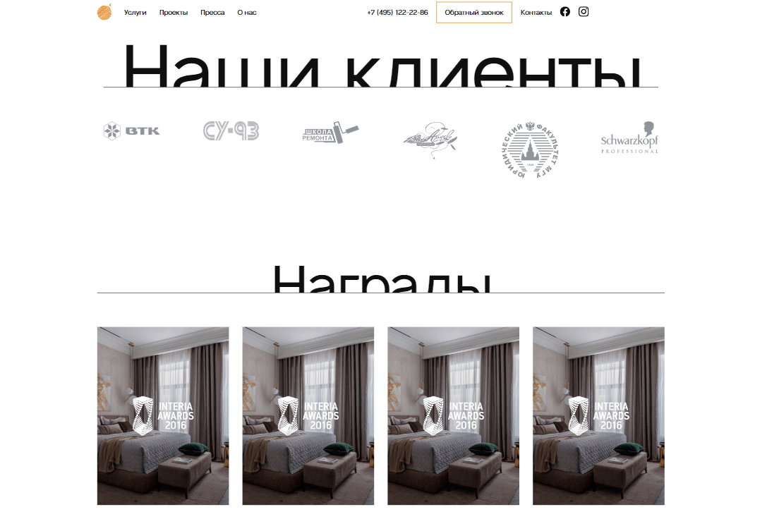 Выполнили основную задачу - создать сайт, который отражает уровень дизайн-студии, получающей заслуженные награды в области интерьерного дизайна.
